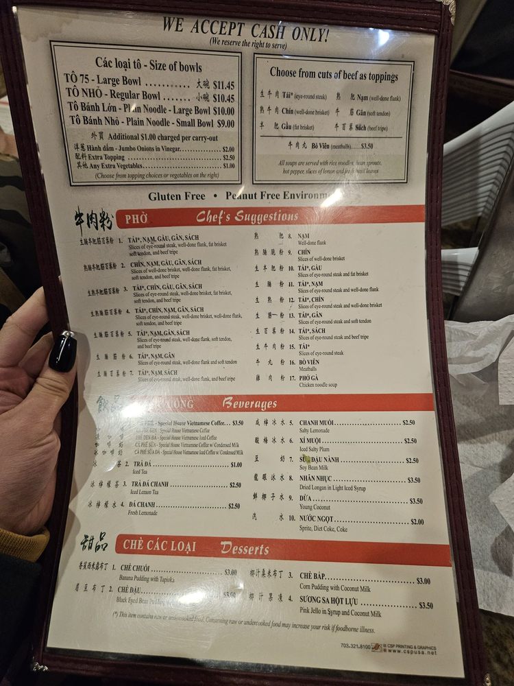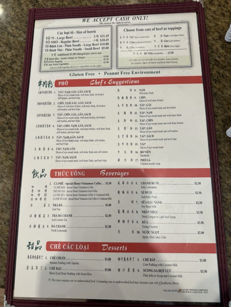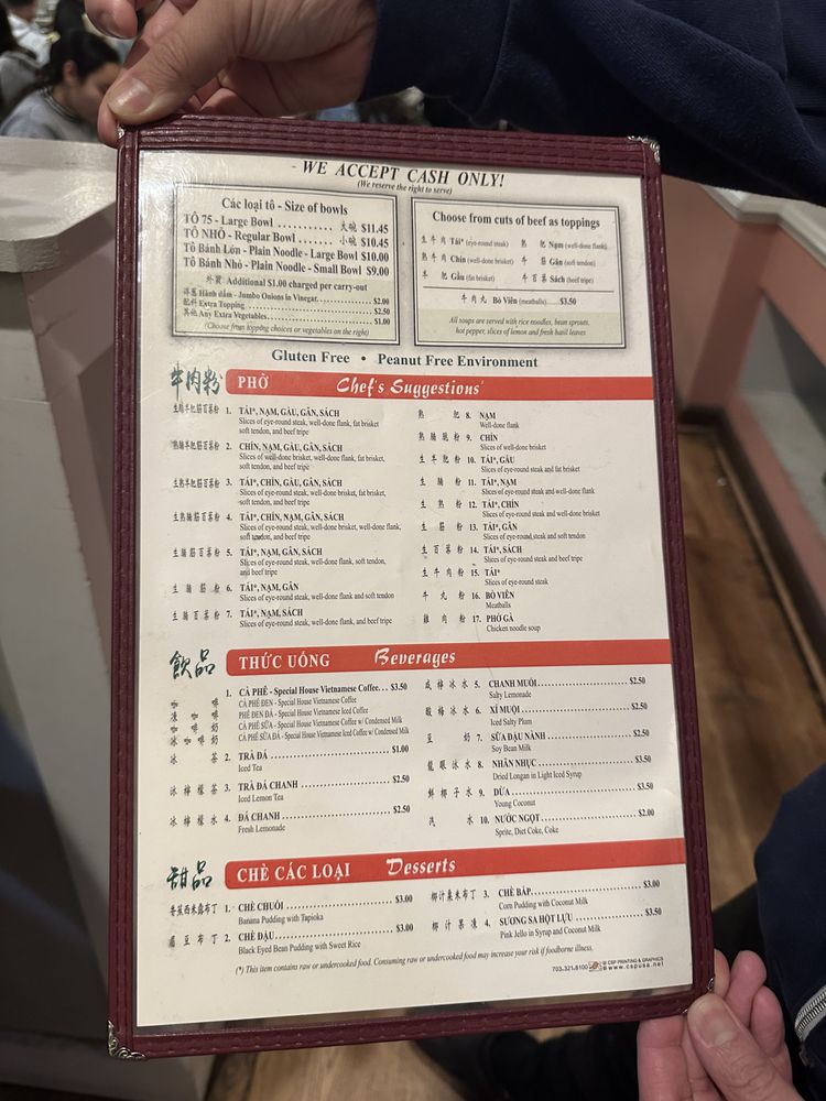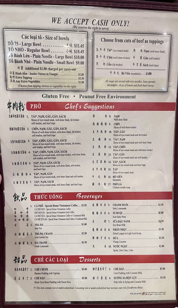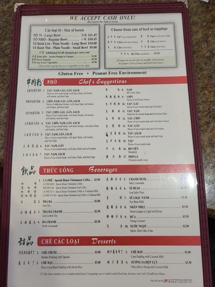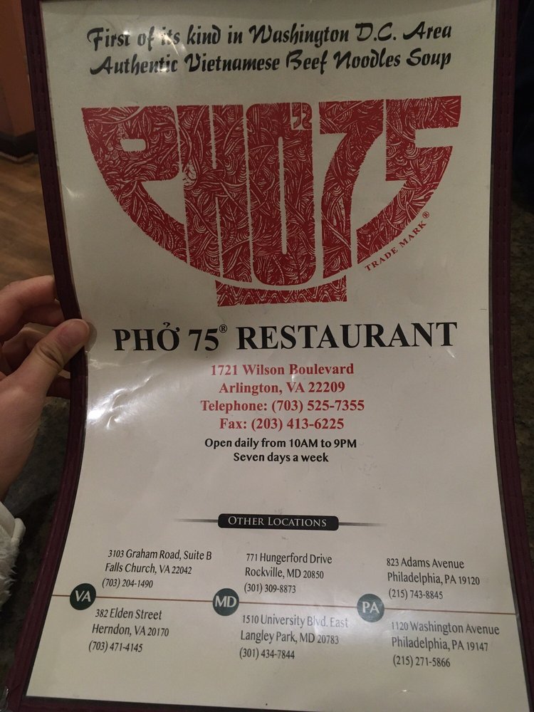 Pho 75 in Arlington, VA offers authentic Vietnamese pho at an affordable price. Customers rave about the flavorful broth, perfectly cooked meat, and well-textured noodles. The casual vibe makes it a great spot for groups or solo dining, with fast service ensuring a quick in-and-out experience. The menu features a variety of pho options, with highlights including the chicken pho and cold Vietnamese coffee. While the ambiance may not be luxurious, the focus on delicious food and efficient service keeps customers coming back. Note that Pho 75 is cash only, but there is an ATM available. Overall, Pho 75 is a must-visit for pho enthusiasts looking for a satisfying and wallet-friendly dining experience.